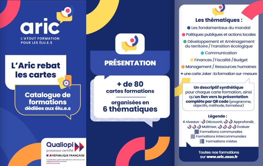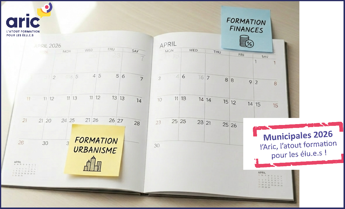 ![]() | Découvrez le calendrier des formations d’avril à décembre 2026 ! L’Aric vous propose un nouveau calendrier de formations individuelles spécialement conçu pour les élu.e.s locaux, animé par des experts des collectivités et favorisant les échanges d’expériences entre pairs. En savoir + |